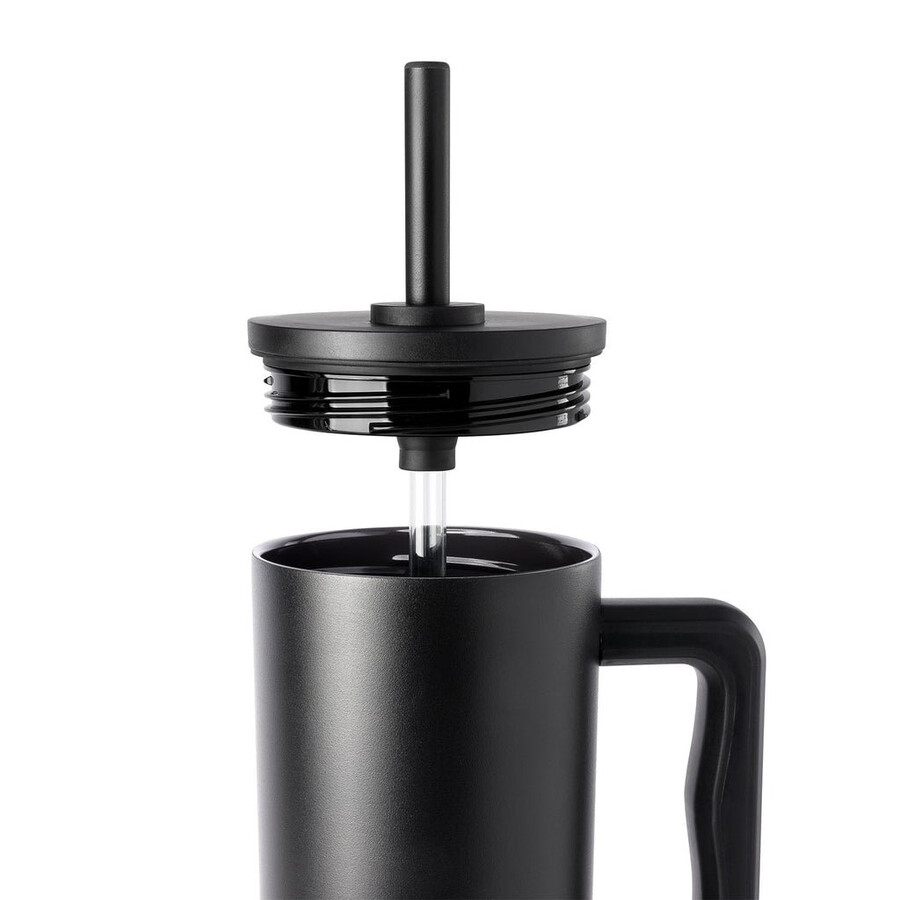 100 % auslaufsicherer Strohhalmdeckel, griffiger Griff, Keramikbeschichteter Innenraum, Silikon-Grip-Boden, becherhalterfreundlich, elegantes Design, langlebiger Edelstahl, über 24 Stunden kalt* (Nicht für kohlensäurehaltige Getränke geeignet). Patent angemeldet.